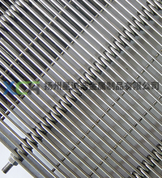 眼鏡網帶是由圓網絲做成眼鏡形狀 然后又支軸串起來做成的網帶,網帶重 量相對較輕,加工時液體和氣體可以輕 松穿過,易于清洗,使用鏈輪或者滾筒 驅動,不會產生滑扣現象,可以使用較 小的滾簡直徑,這樣可以保證良好運 行,易于維修,眼鏡網帶用在以下方 面速凍設備,鑄造設備,淬火槽,脫 水設備,殺菌設備,干燥設備,不銹鋼 鼓風設備,過濾設備,包裝設備,烘焙 爐,冷卻設備,漂燙設備,倉儲設備, 收縮包裝設備,清洗設備等。